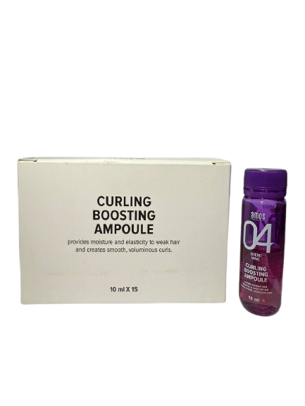 Amos Professional Curling Boosting Ampoule 04 is a hair treatment designed for weak, wavy, or curly hair. It comes as a set of 15 individual 10 ml ampoules, providing moisture and elasticity to create smooth, voluminous curls.
