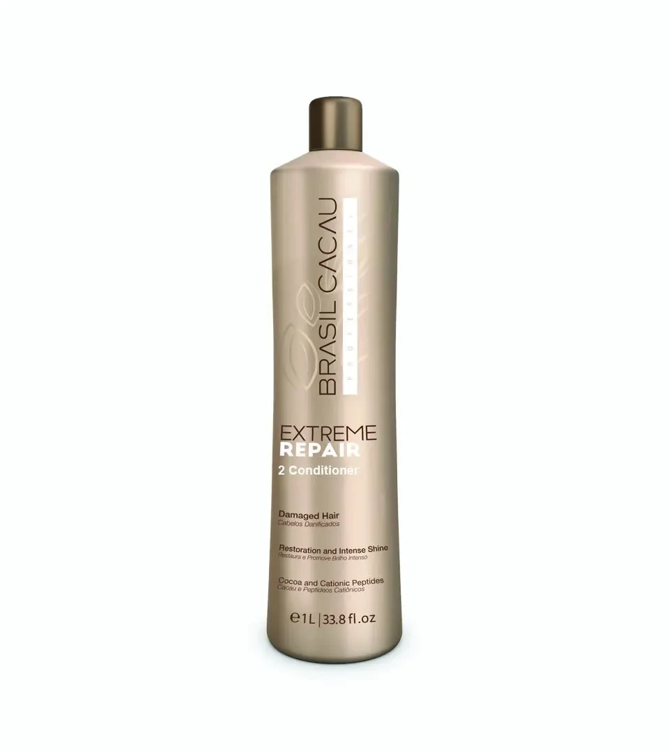 Brasil Cacau Extreme Repair Conditioner 1000ml is an intense repair conditioner that uses the restorative properties of cocoa to treat, mend and repair damaged hair caused by chemicals and excessive heat.
