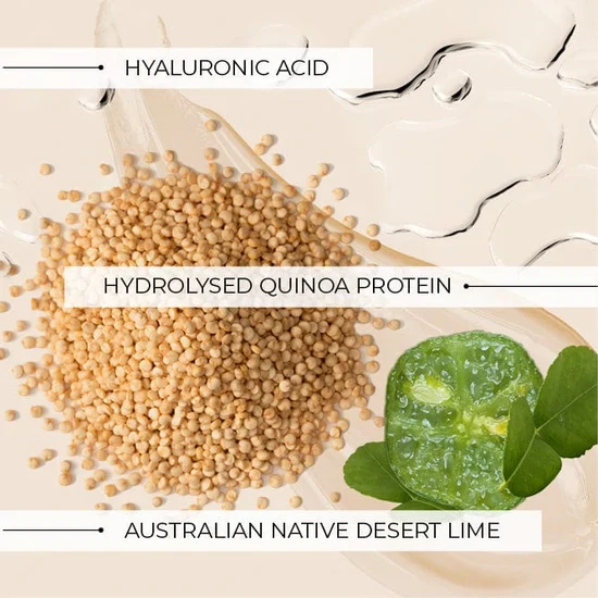 Aqua (Water), Sodium C14- 16 Olefin Sulfonate, Cocamidopropyl Betaine, Cocamidopropyl Hydroxysultaine, Sodium Methyl Cocoyl Taurate, Glycerine, Peg Distearate, Cocamide Mea, Glycol Distearate, Laureth-4, Sodium Chloride, Polyquaternium-7, Hydrolysed Quinoa, Phenoxyethanol, Sodium Chloride, Caprylyl Glycol, Chondrus Crispus Extract, Tocopheryl Acetate (Vitamin E), Sodium Hyaluronate, Linoleic Acid, Linolenic Acid, Citrus Glauca Fruit (Desert Lime) Extract, Olea Europaea (Olive) Leaf Extract, Parfum (Fragrance), Citric Acid, Citral, Citronellol, Geraniol, Limonene, Linalool, Benzyl Salicylate, Α-1-(2,6,6-trimethyl- 2- C Y C Loh E X E N -1-y L ) - 2- B U T E N -1- On E .